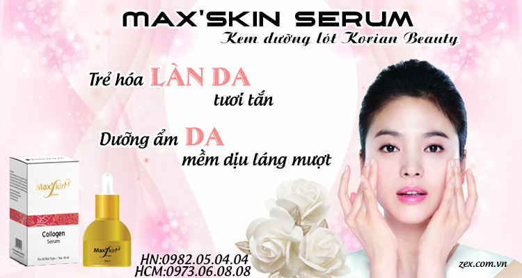 - Max’skin Serum giúp kem nền và phấn dễ bám vào da hơn tạo lớp trang điểm đẹp hơn và hỗ trợ cho khuyết điểm trên da khi trang điểm.